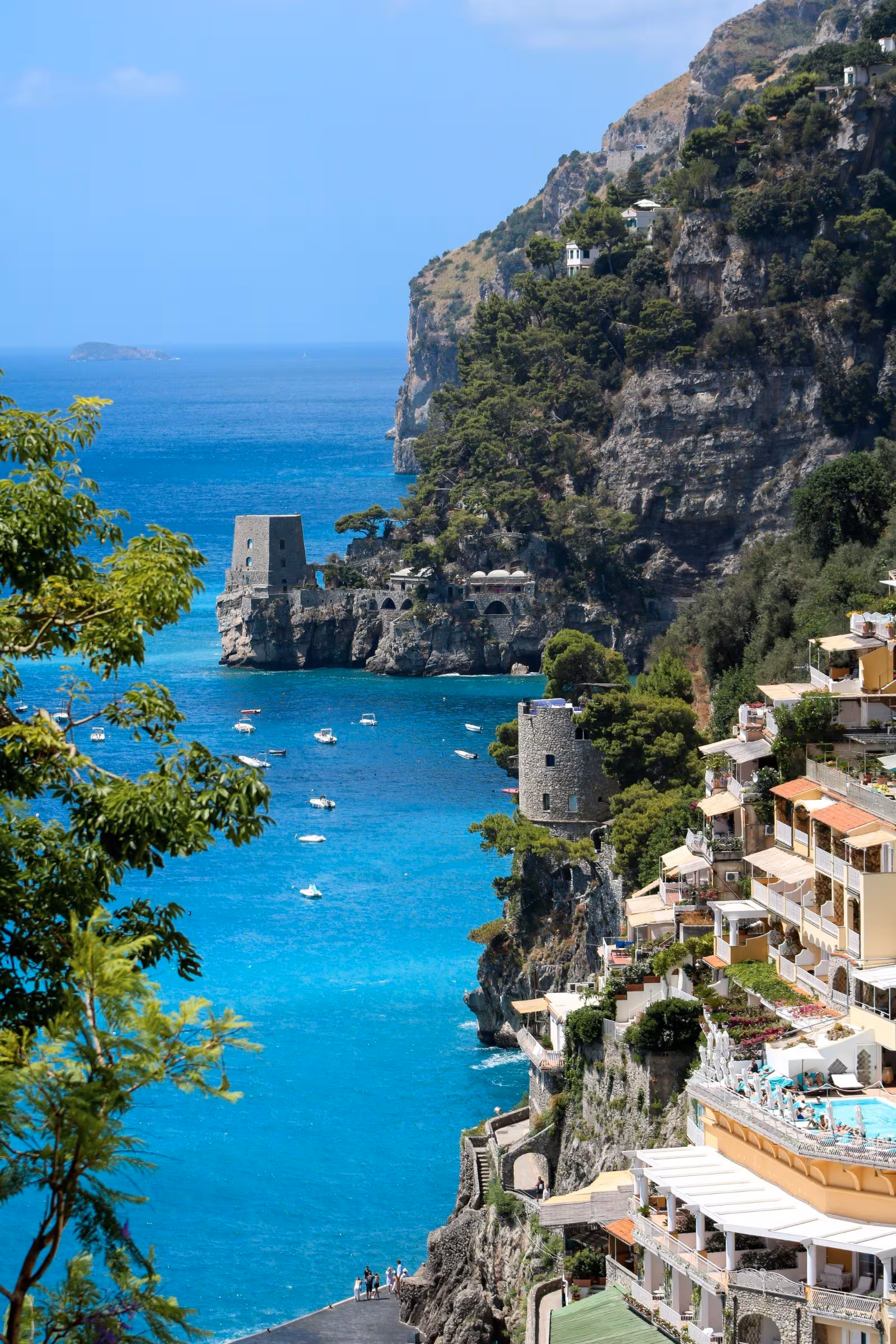 Llegue a la espectacular Positano, un pueblo vertical encaramado de forma espectacular en la ladera de la montaña con impresionantes vistas al Mediterráneo.