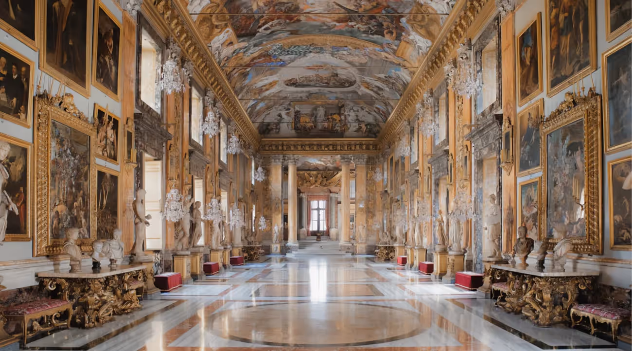 Entra en la impresionante Galería de los Espejos, una obra maestra barroca con candelabros, espejos y valiosas obras de arte. Admira las pinturas de Guido Reni, Tintoretto y El Greco mientras tu guía te explica la importancia artística y social de este gran salón de recepciones, donde la familia recibía a la élite europea.