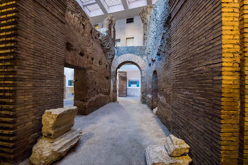 Explora la ruta combinada que conecta dos zonas arqueológicas. Contempla lo que queda de este raro testimonio de la ingeniería romana, junto al yacimiento de la Ecole Français en la Piazza di Tor Sanguigna.