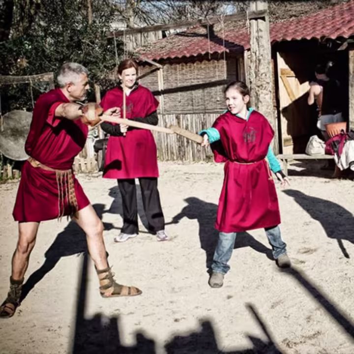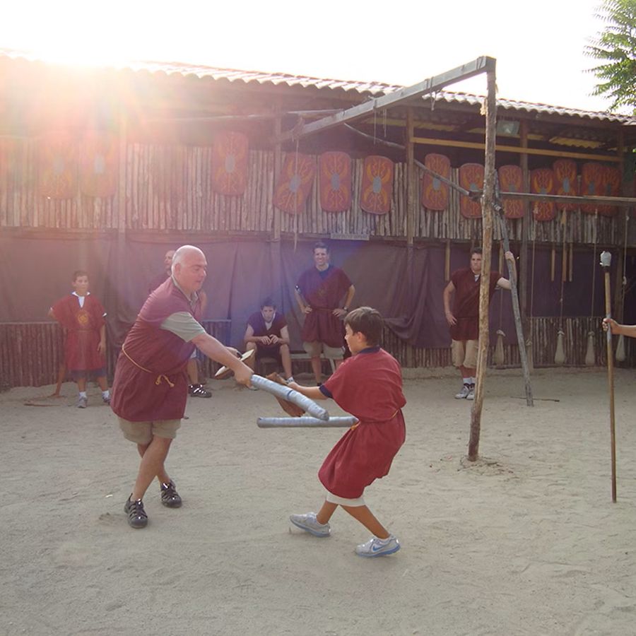 Children don traditional gladiator attire and are introduced to real training weapons. Feel like authentic Roman gladiators preparing for combat training.